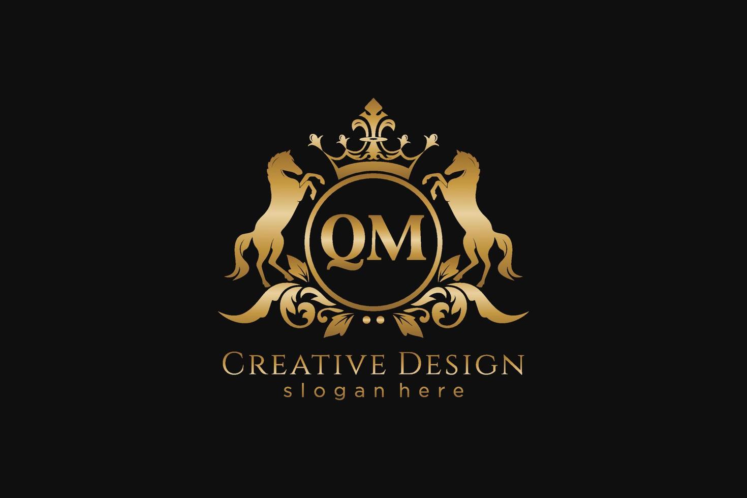 initial QM Retro golden crest with circle and two horses, badge template with scrolls and royal crown - perfect for luxurious branding projects Pro Vector and Pro SVG