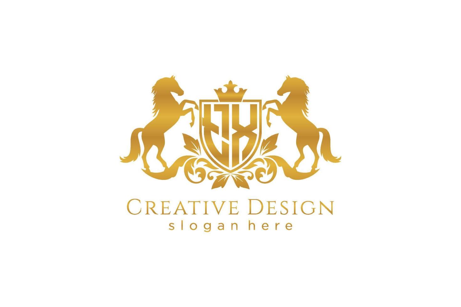 initial TX Retro golden crest with shield and two horses, badge template with scrolls and royal crown - perfect for luxurious branding projects Pro Vector and Pro SVG