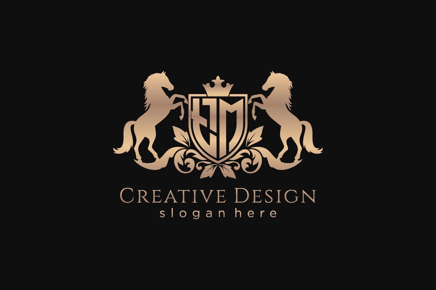 initial TM Retro golden crest with shield and two horses, badge template with scrolls and royal crown - perfect for luxurious branding projects Pro Vector and Pro SVG