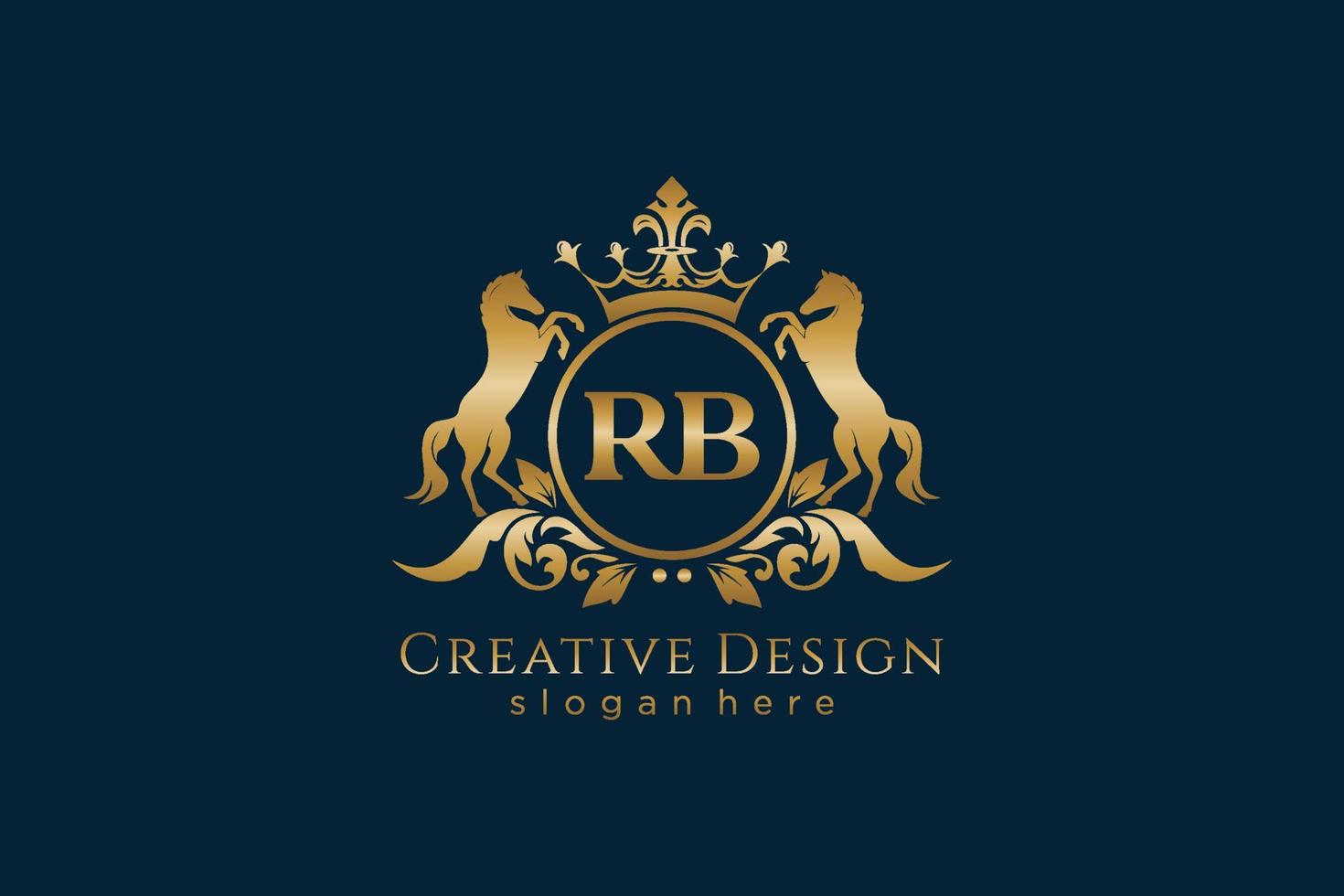 initial RB Retro golden crest with circle and two horses, badge template with scrolls and royal crown - perfect for luxurious branding projects Pro Vector and Pro SVG