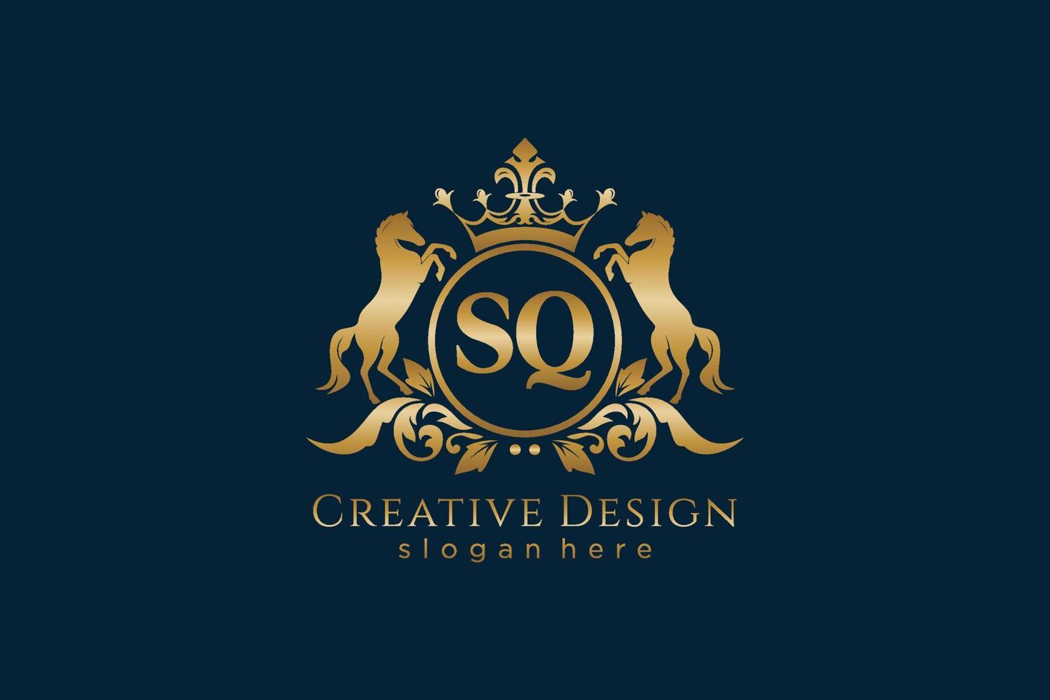 initial SQ Retro golden crest with circle and two horses, badge template with scrolls and royal crown - perfect for luxurious branding projects Pro Vector and Pro SVG