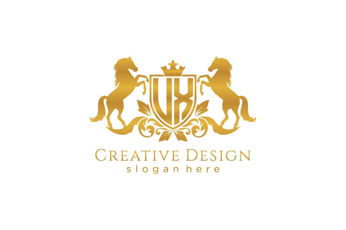 initial UX Retro golden crest with shield and two horses, badge template with scrolls and royal crown - perfect for luxurious branding projects Pro Vector and Pro SVG