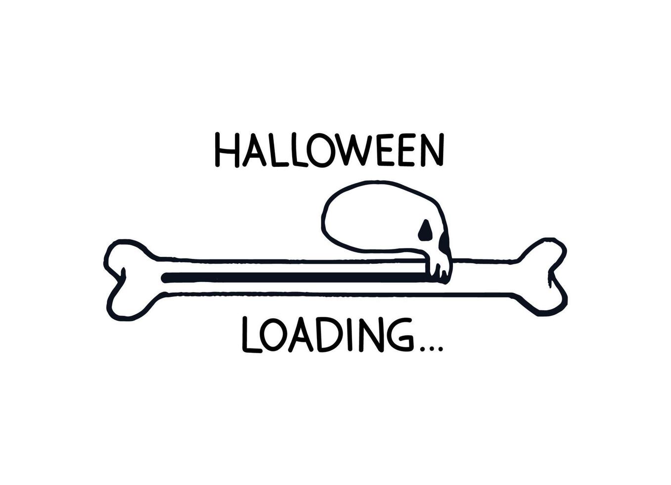 Halloween loading bar. Doodle progress bar bone with skull in profile outline. Vector stock illustration black on white sketch with quote halloween loading Pro Vector