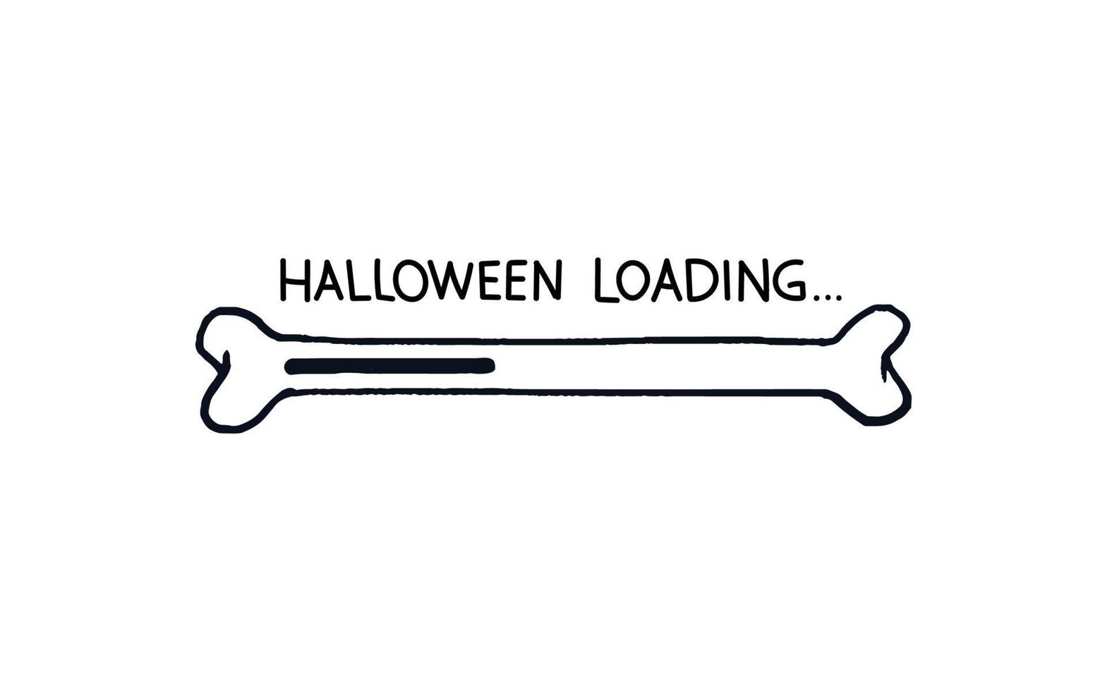 Halloween loading bar. Doodle progress bar bone with loading indicator. Vector stock illustration black on white sketch with quote on top. Pro Vector