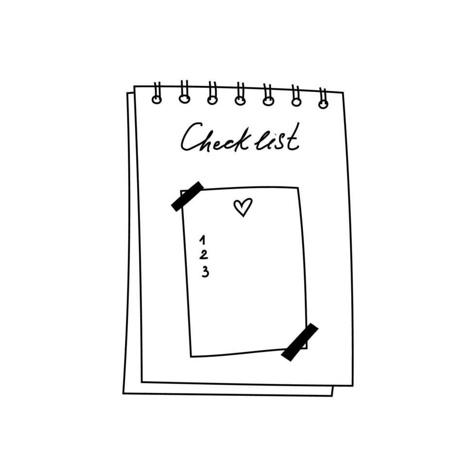 Doodle notebook with spiral and checklist isolated. A hand-drawn diary with a wish list. A vertical notebook with a piece of paper. Pro Vector
