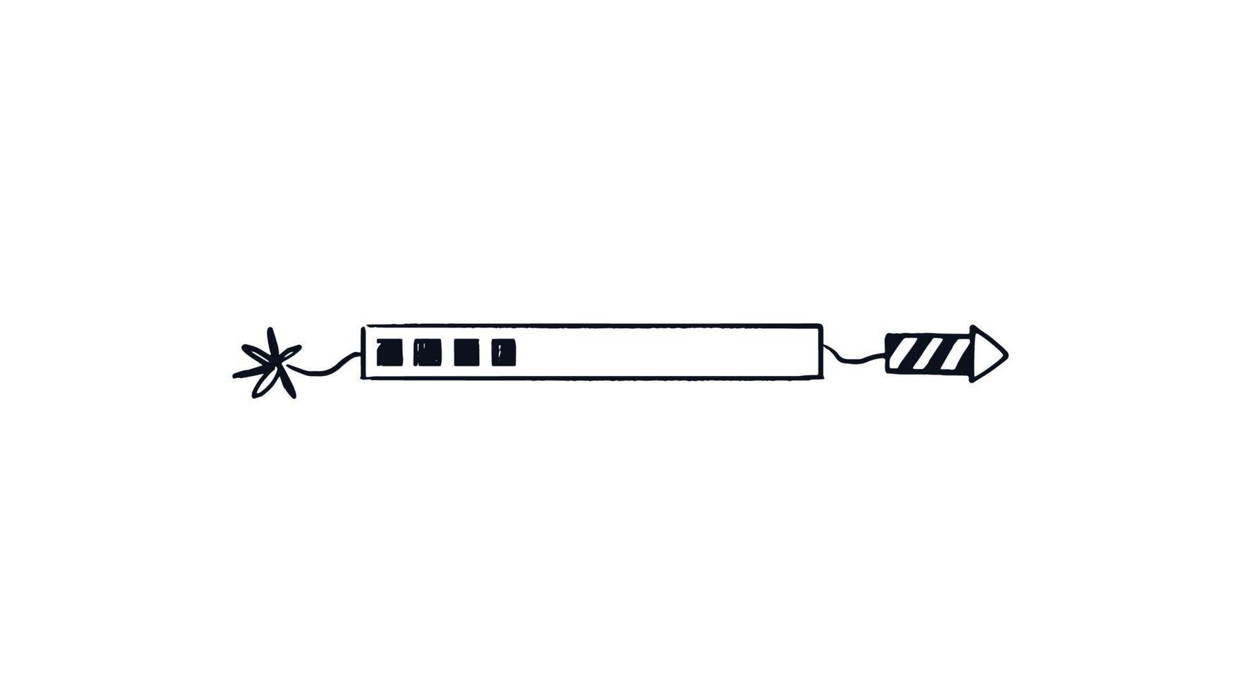 Firecracker loading bar. Doodle download bar filled with square indicators. The holiday of progress is coming soon. Vector Hand-drawn sketch isolated on white background. Pro Vector