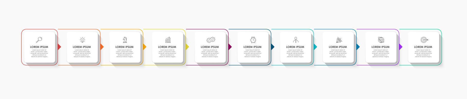 Business Infographics template. Timeline with 10 steps, options and marketing icons .Vector linear infographic with two circle conected elements. Can be use for presentation. Pro Vector