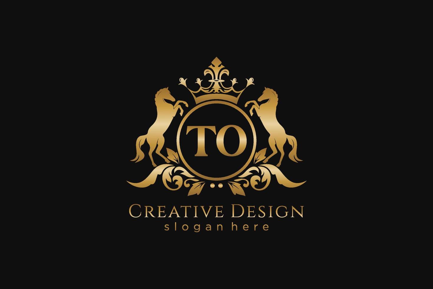 initial TO Retro golden crest with circle and two horses, badge template with scrolls and royal crown - perfect for luxurious branding projects Pro Vector and Pro SVG