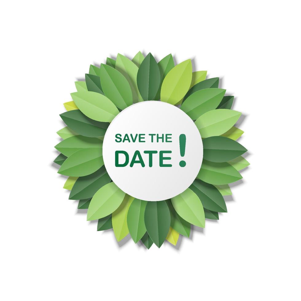 Save the date with green leaves on white background for graphic design, logo, web site, social media, mobile app, ui vector illustration. Pro Vector