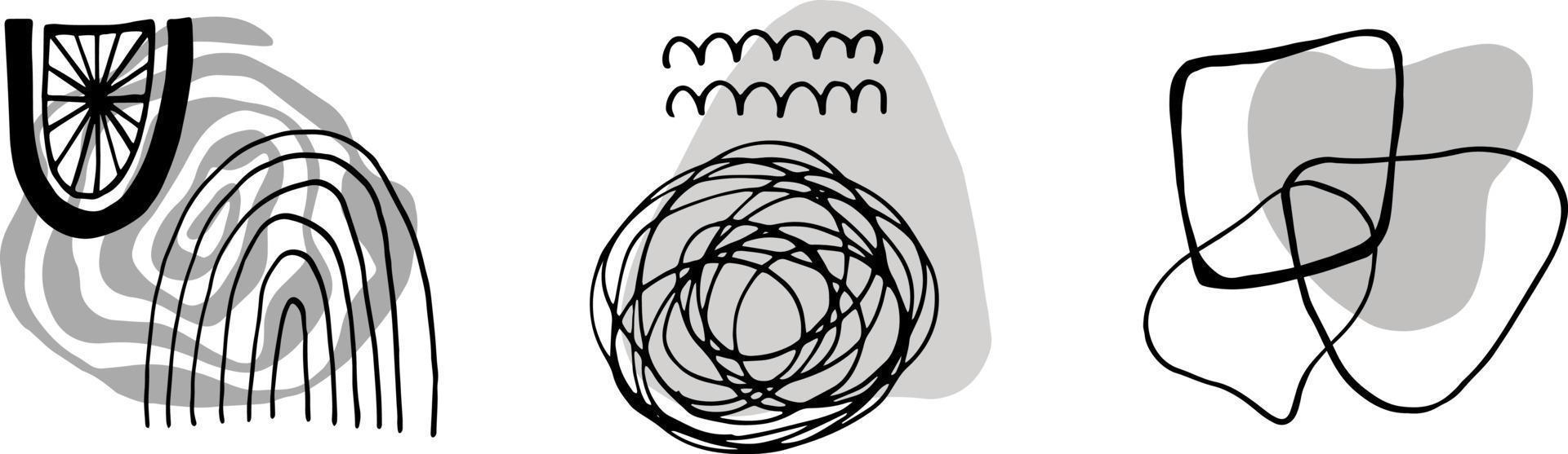 Set of abstract collages for design of patterns, social networks, posts, stickers. Chaotic hand drawn illustrations Pro Vector