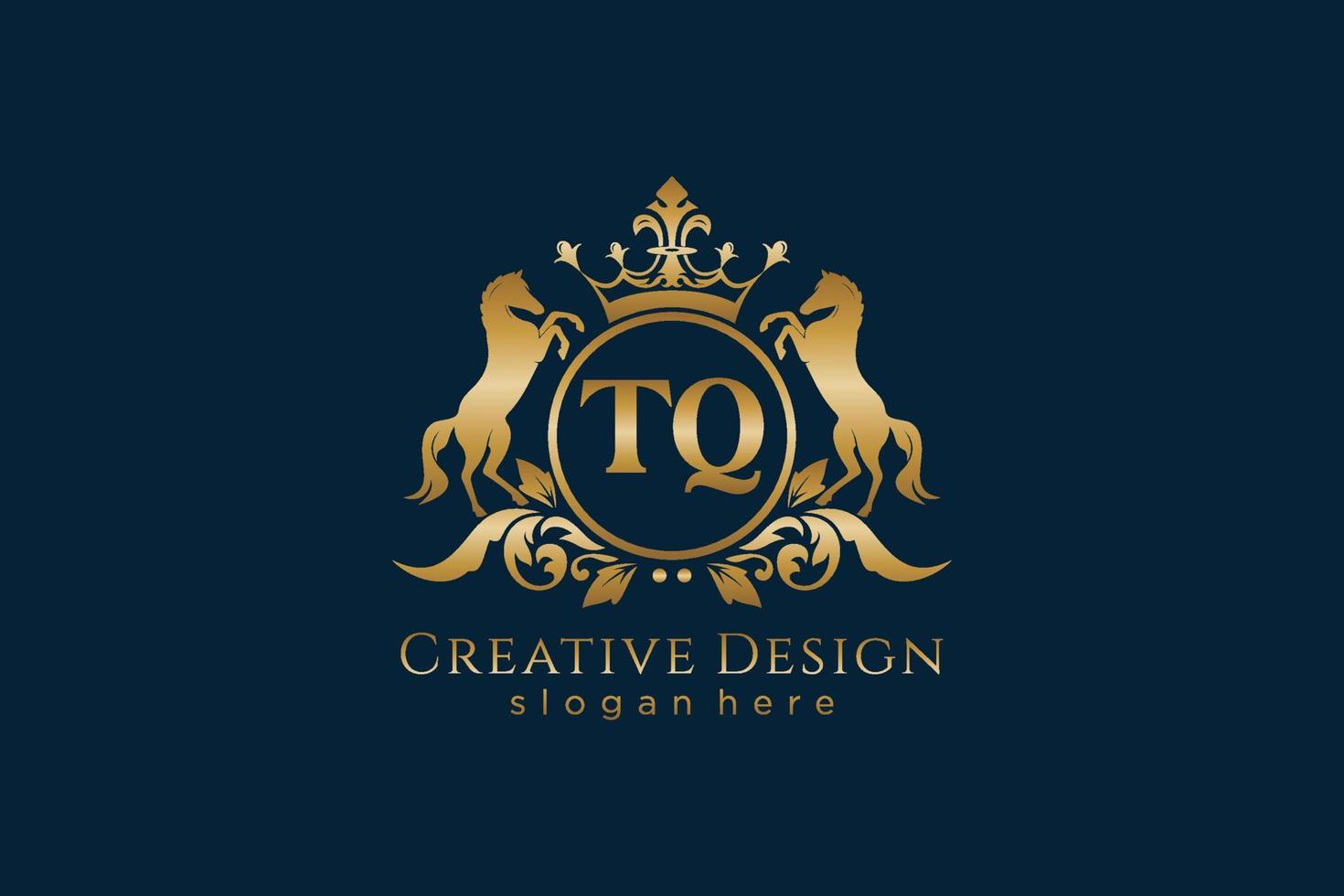 initial TQ Retro golden crest with circle and two horses, badge template with scrolls and royal crown - perfect for luxurious branding projects Pro Vector and Pro SVG