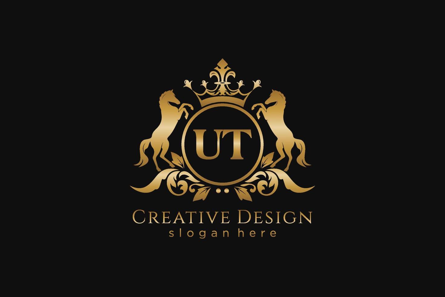 initial UT Retro golden crest with circle and two horses, badge template with scrolls and royal crown - perfect for luxurious branding projects Pro Vector and Pro SVG