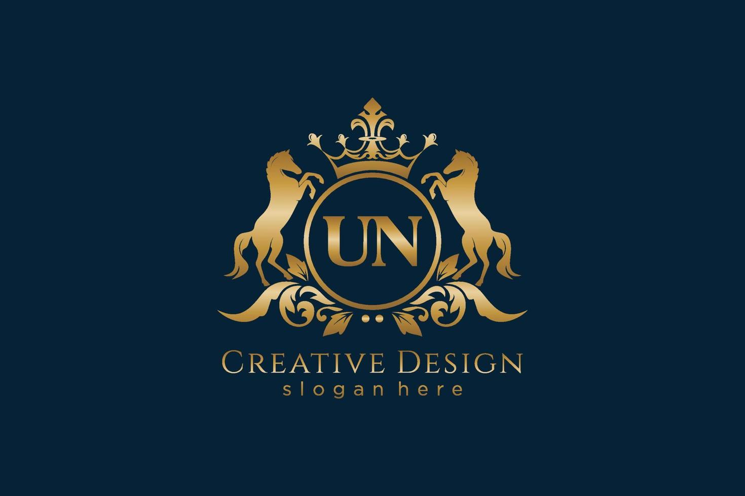 initial UN Retro golden crest with circle and two horses, badge template with scrolls and royal crown - perfect for luxurious branding projects Pro Vector and Pro SVG
