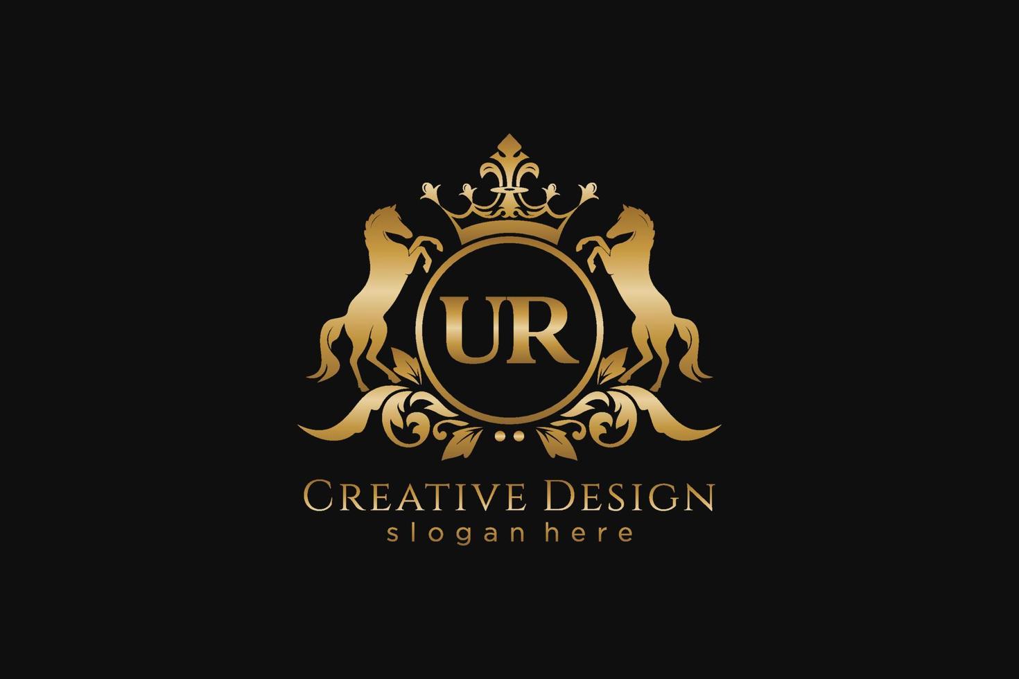 initial UR Retro golden crest with circle and two horses, badge template with scrolls and royal crown - perfect for luxurious branding projects Pro Vector and Pro SVG