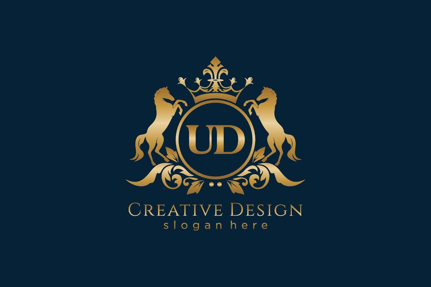 initial UD Retro golden crest with circle and two horses, badge template with scrolls and royal crown - perfect for luxurious branding projects Pro Vector and Pro SVG