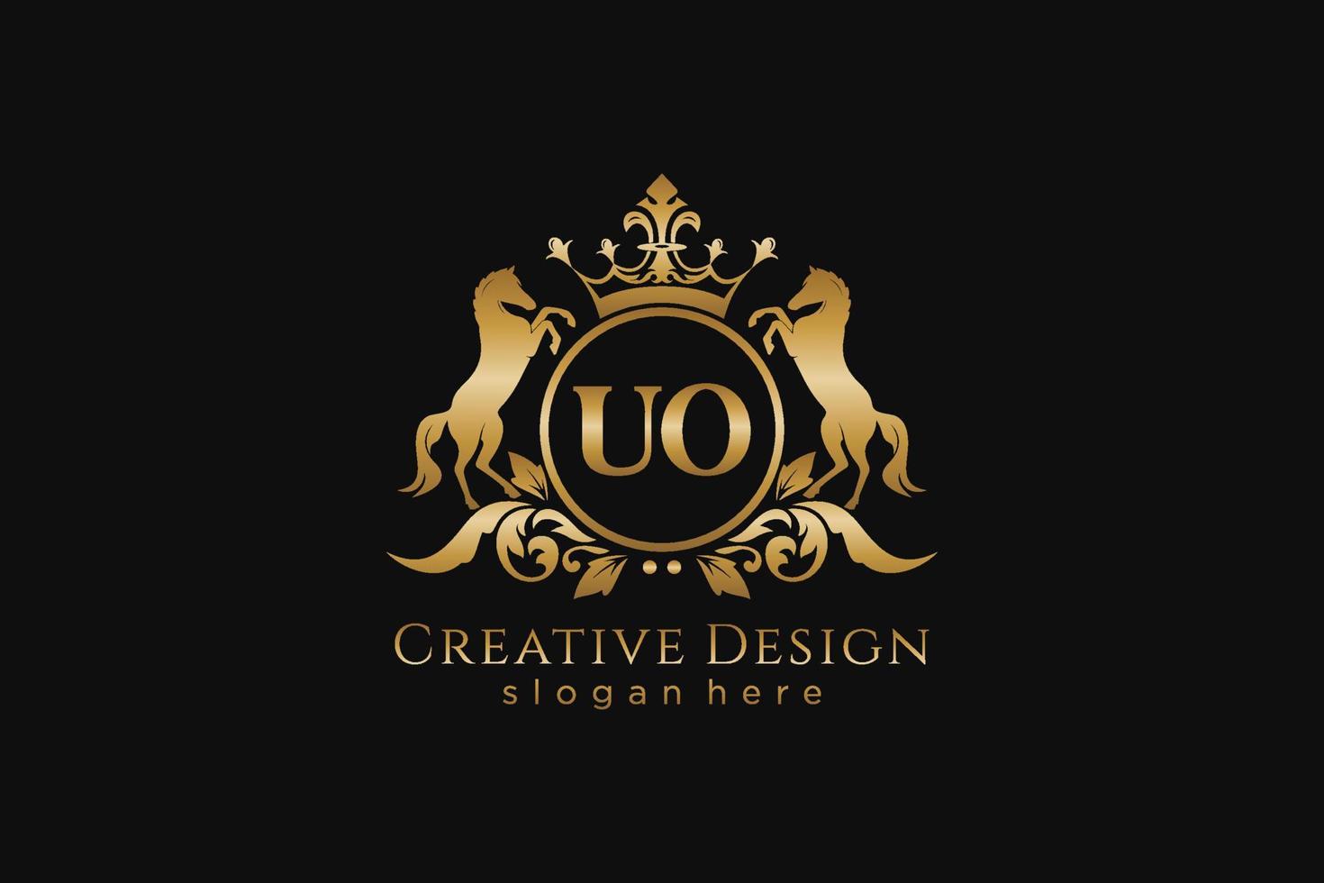 initial UO Retro golden crest with circle and two horses, badge template with scrolls and royal crown - perfect for luxurious branding projects Pro Vector and Pro SVG