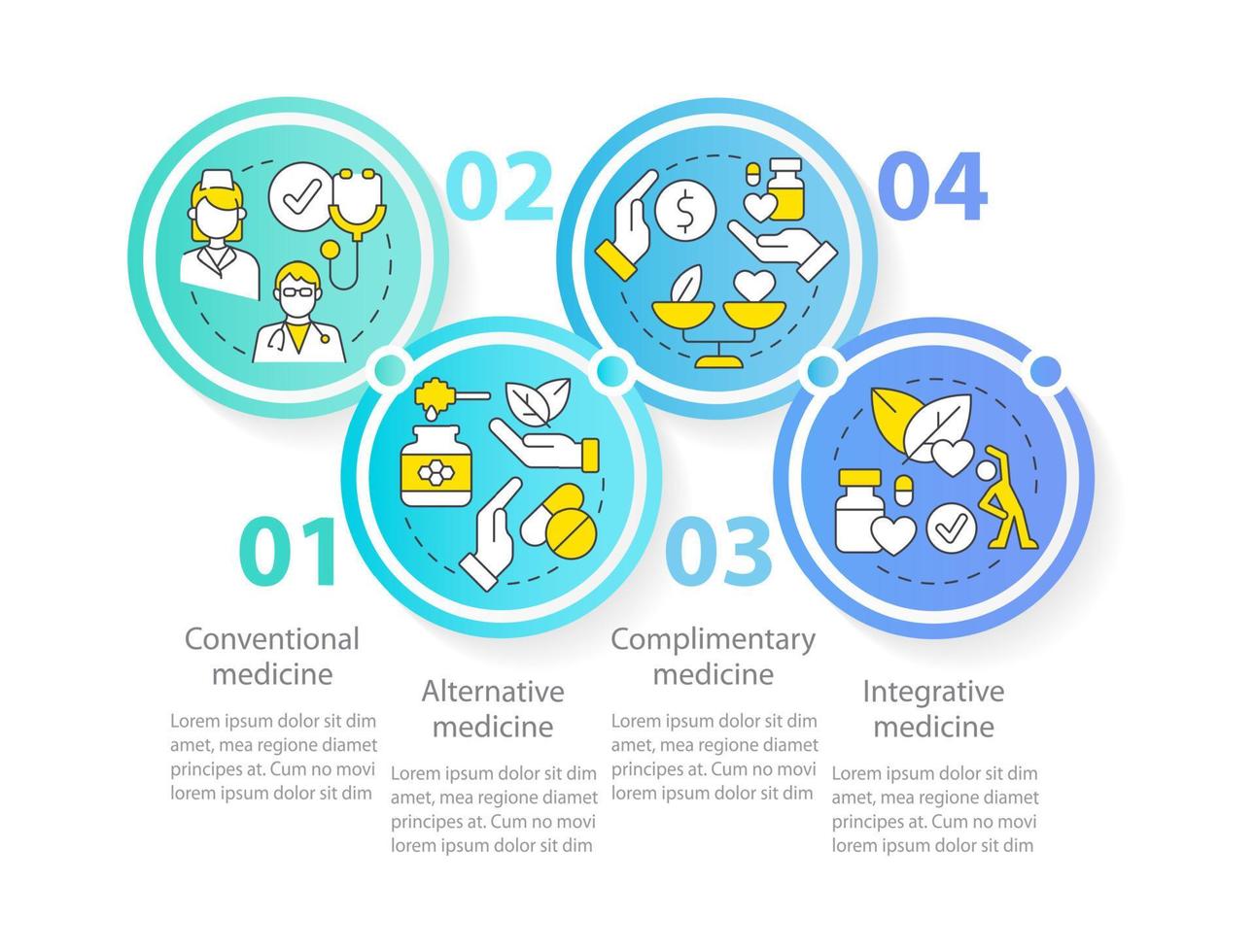 Non-mainstream healthcare approaches circle infographic template. Data visualization with 4 steps. Editable timeline info chart. Workflow layout with line icons. Pro Vector