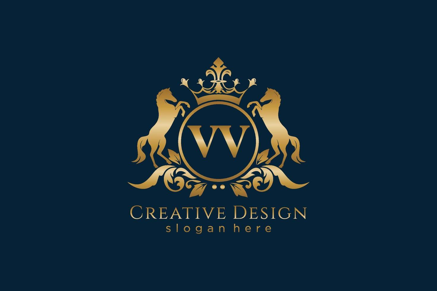 initial VV Retro golden crest with circle and two horses, badge template with scrolls and royal crown - perfect for luxurious branding projects Pro Vector and Pro SVG