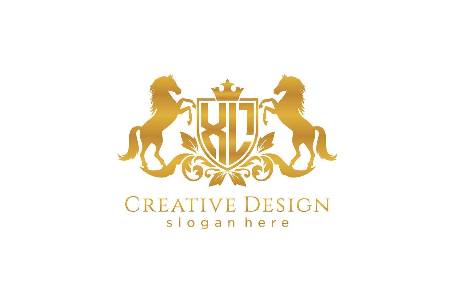 initial XL Retro golden crest with shield and two horses, badge template with scrolls and royal crown - perfect for luxurious branding projects Pro Vector and Pro SVG
