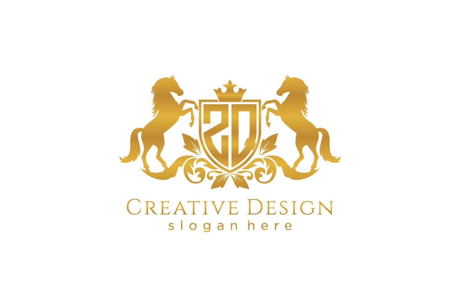 initial ZQ Retro golden crest with shield and two horses, badge template with scrolls and royal crown - perfect for luxurious branding projects Pro Vector and Pro SVG