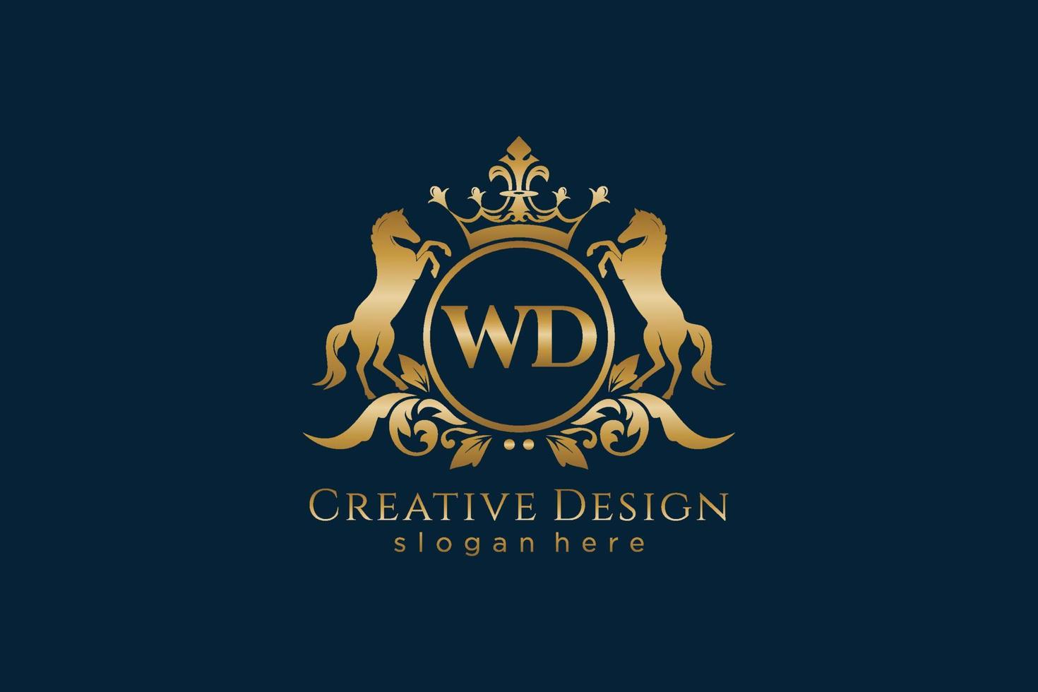 initial WD Retro golden crest with circle and two horses, badge template with scrolls and royal crown - perfect for luxurious branding projects Pro Vector and Pro SVG