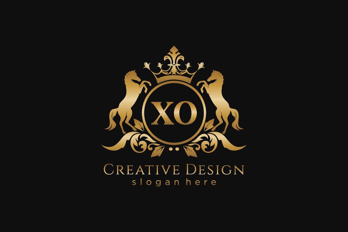 initial XO Retro golden crest with circle and two horses, badge template with scrolls and royal crown - perfect for luxurious branding projects Pro Vector and Pro SVG