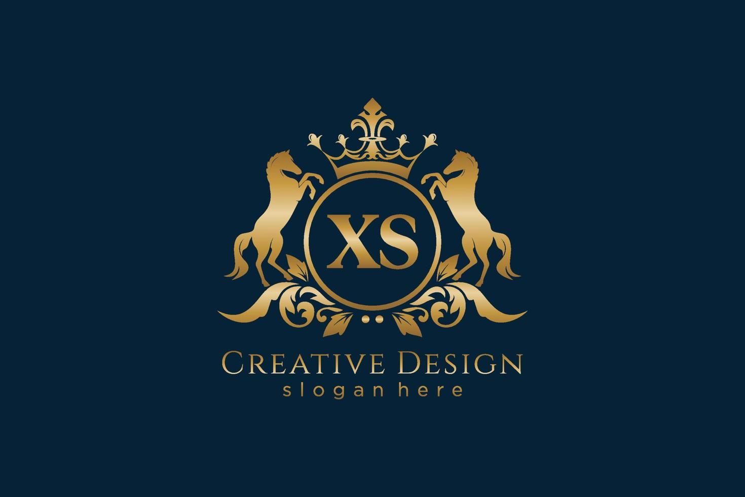 initial XS Retro golden crest with circle and two horses, badge template with scrolls and royal crown - perfect for luxurious branding projects Pro Vector and Pro SVG