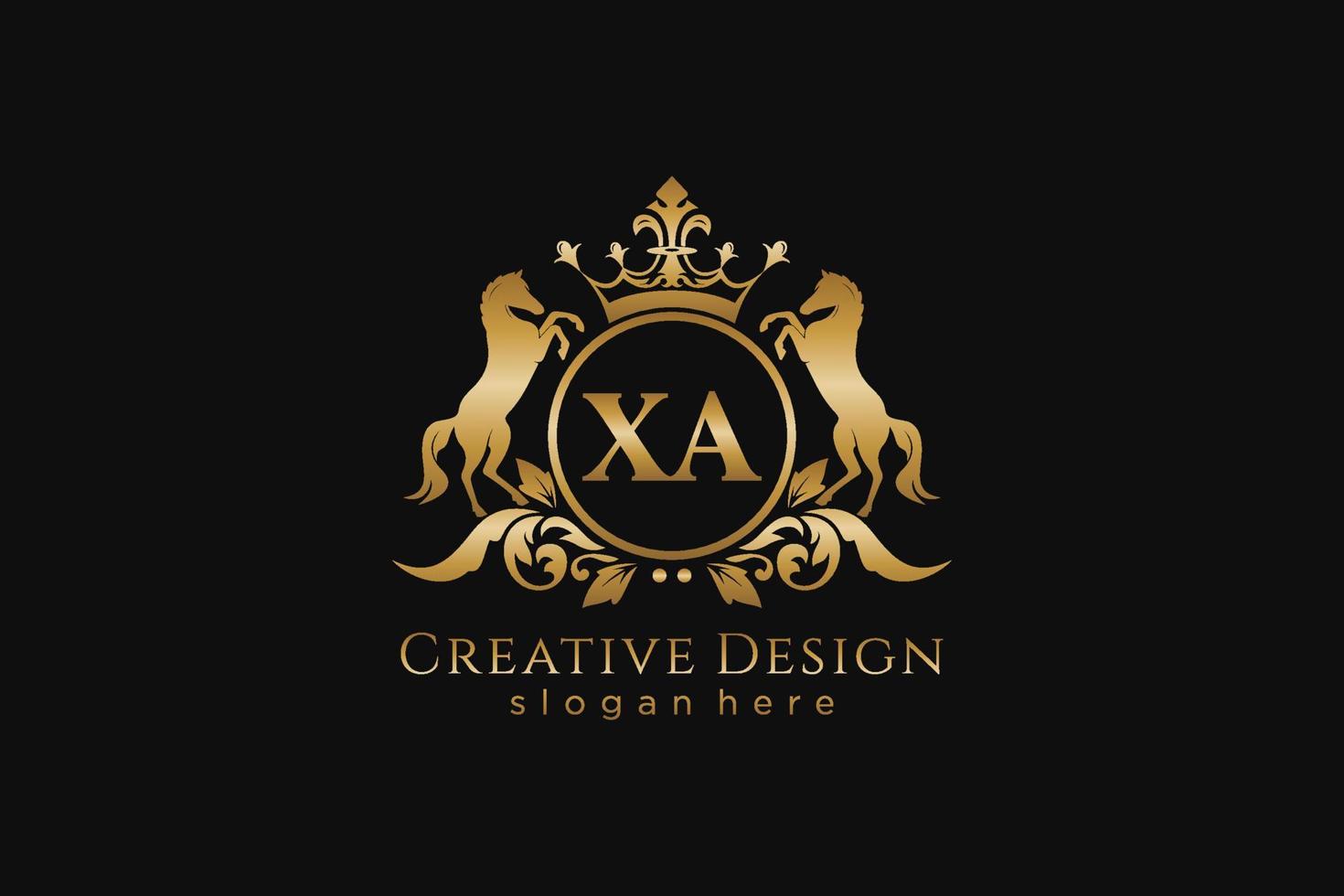 initial XA Retro golden crest with circle and two horses, badge template with scrolls and royal crown - perfect for luxurious branding projects Pro Vector and Pro SVG