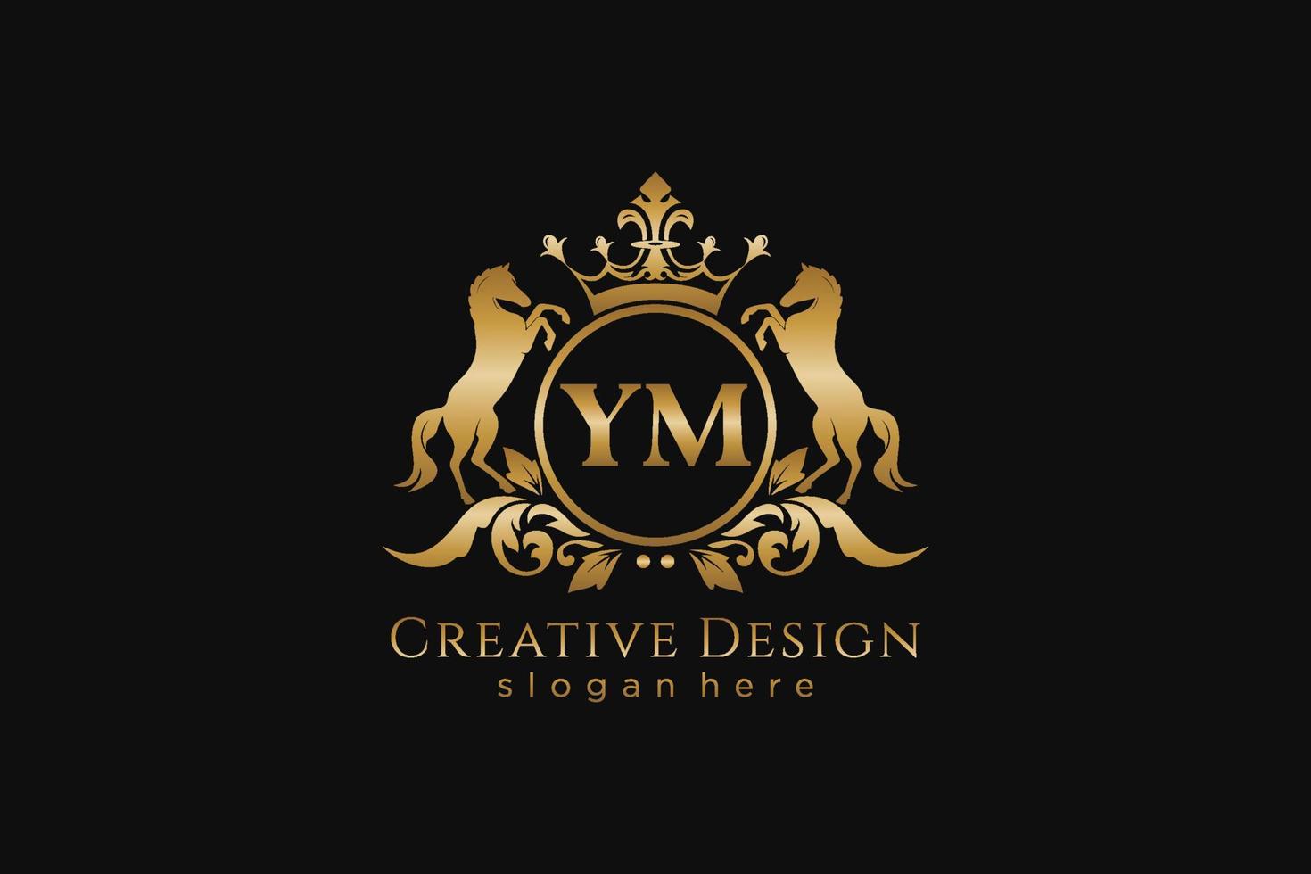 initial YM Retro golden crest with circle and two horses, badge template with scrolls and royal crown - perfect for luxurious branding projects Pro Vector and Pro SVG