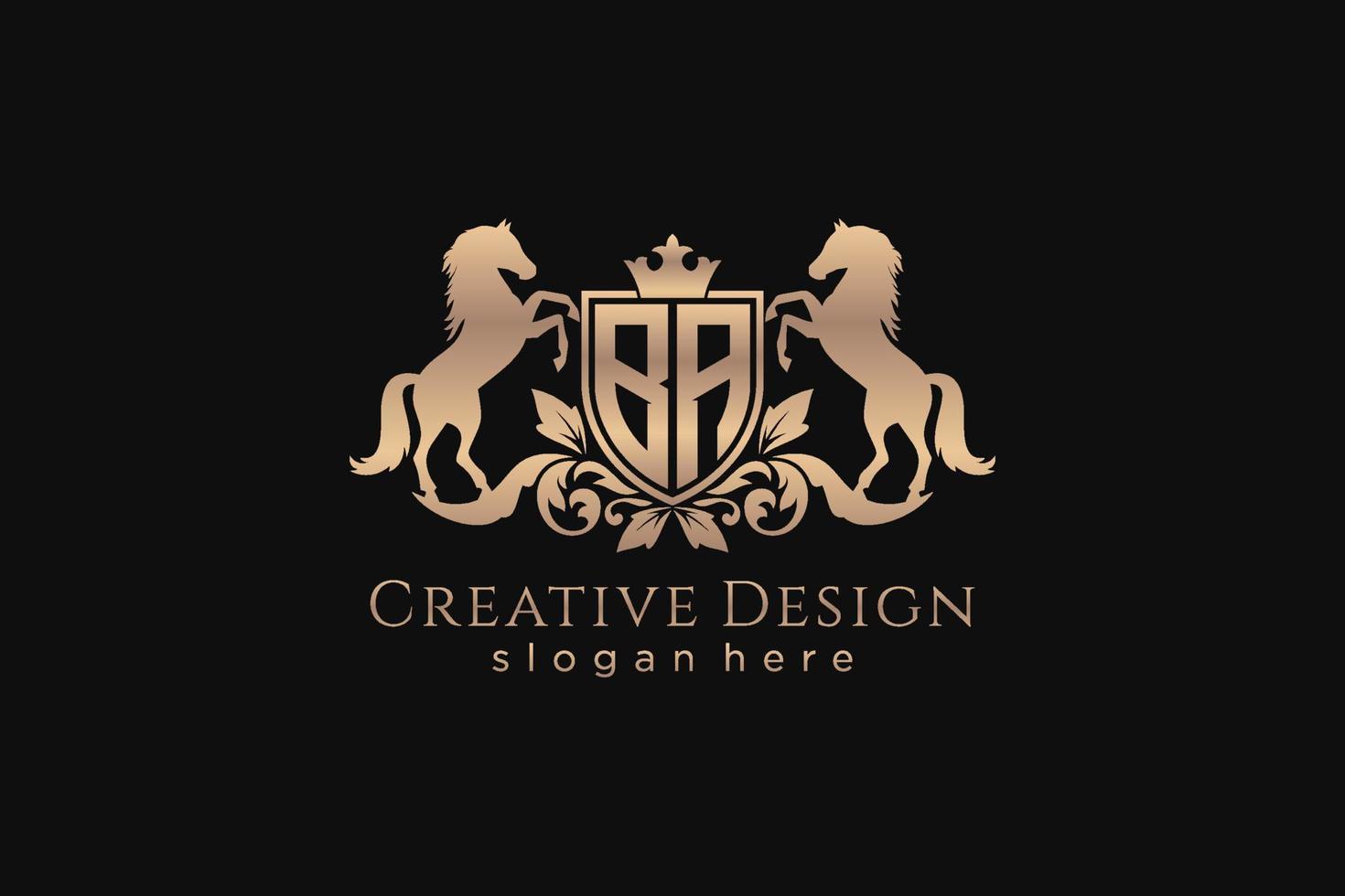 initial BA Retro golden crest with shield and two horses, badge template with scrolls and royal crown - perfect for luxurious branding projects Pro Vector and Pro SVG