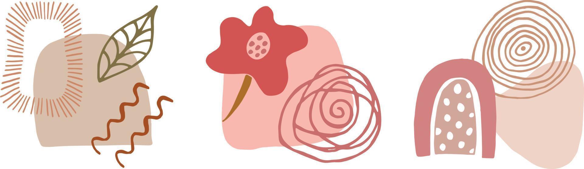 Set of abstract collages for design of patterns, social networks, posts, stickers. Chaotic hand drawn illustrations Pro Vector