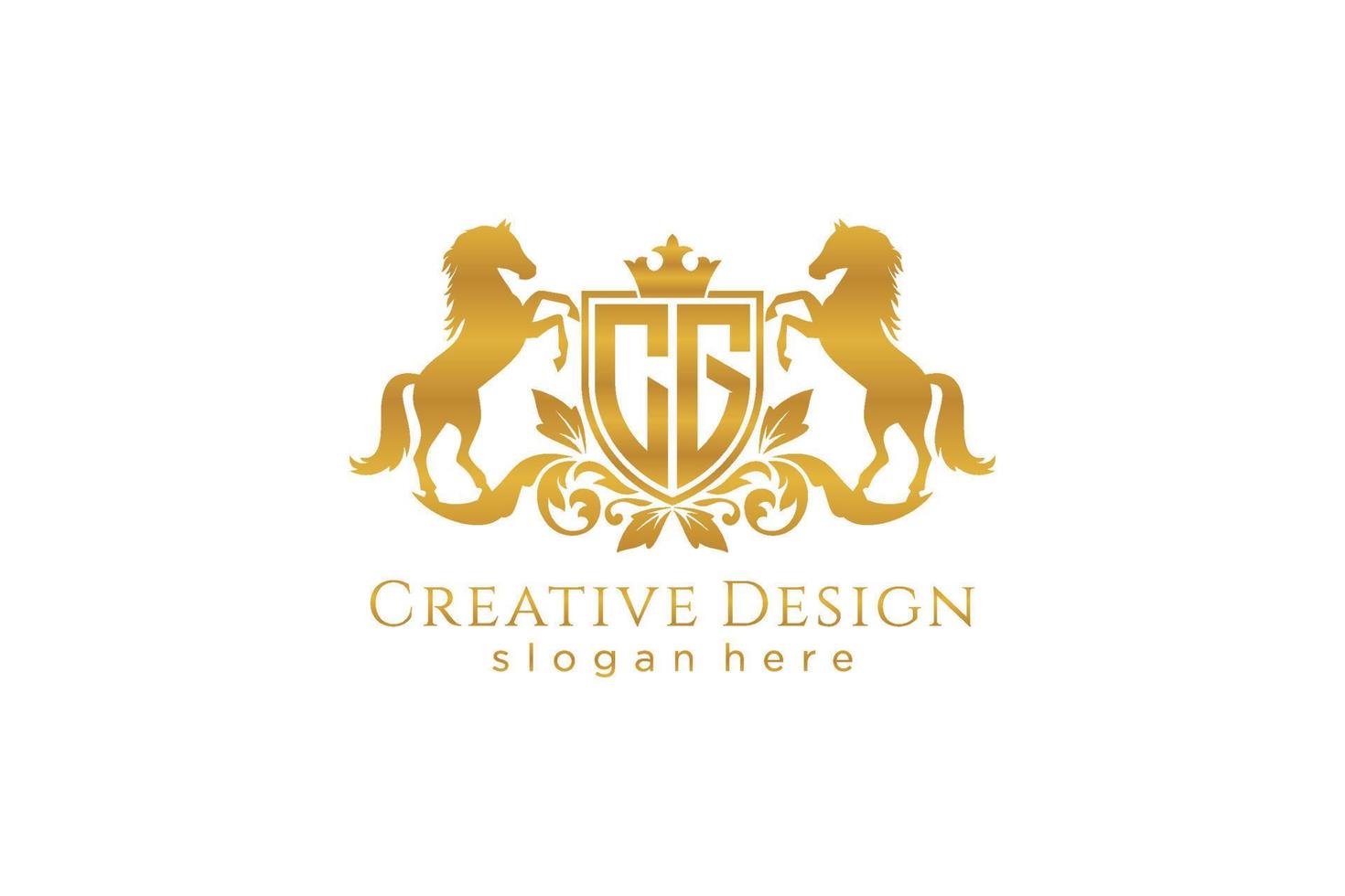 initial CG Retro golden crest with shield and two horses, badge template with scrolls and royal crown - perfect for luxurious branding projects Pro Vector and Pro SVG