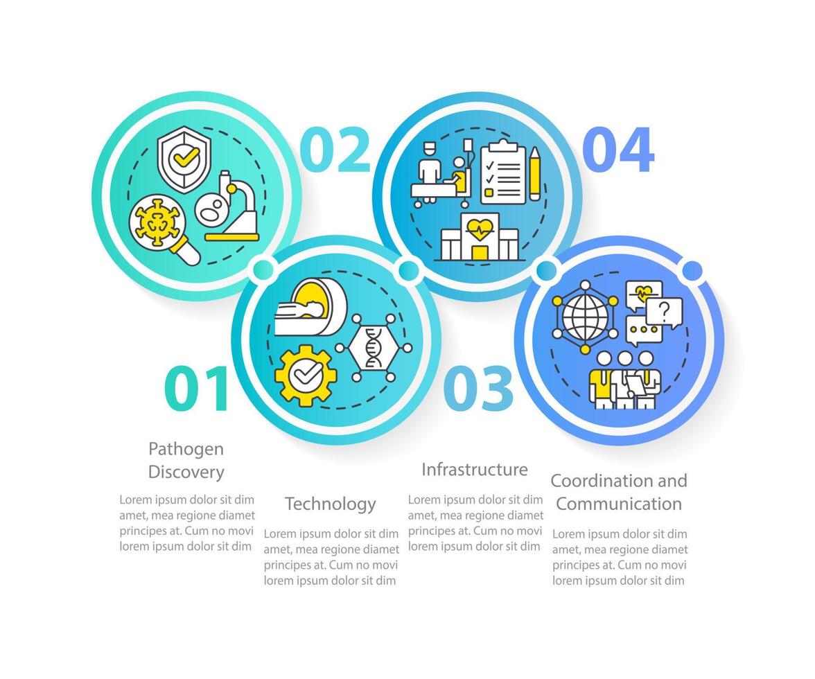 Pandemic preparedness efforts blue circle infographic template. Data visualization with 4 steps. Editable timeline info chart. Workflow layout with line icons. Pro Vector