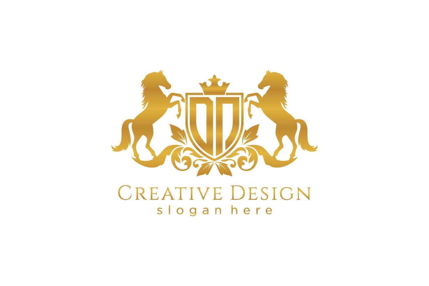 initial DN Retro golden crest with shield and two horses, badge template with scrolls and royal crown - perfect for luxurious branding projects Pro Vector and Pro SVG