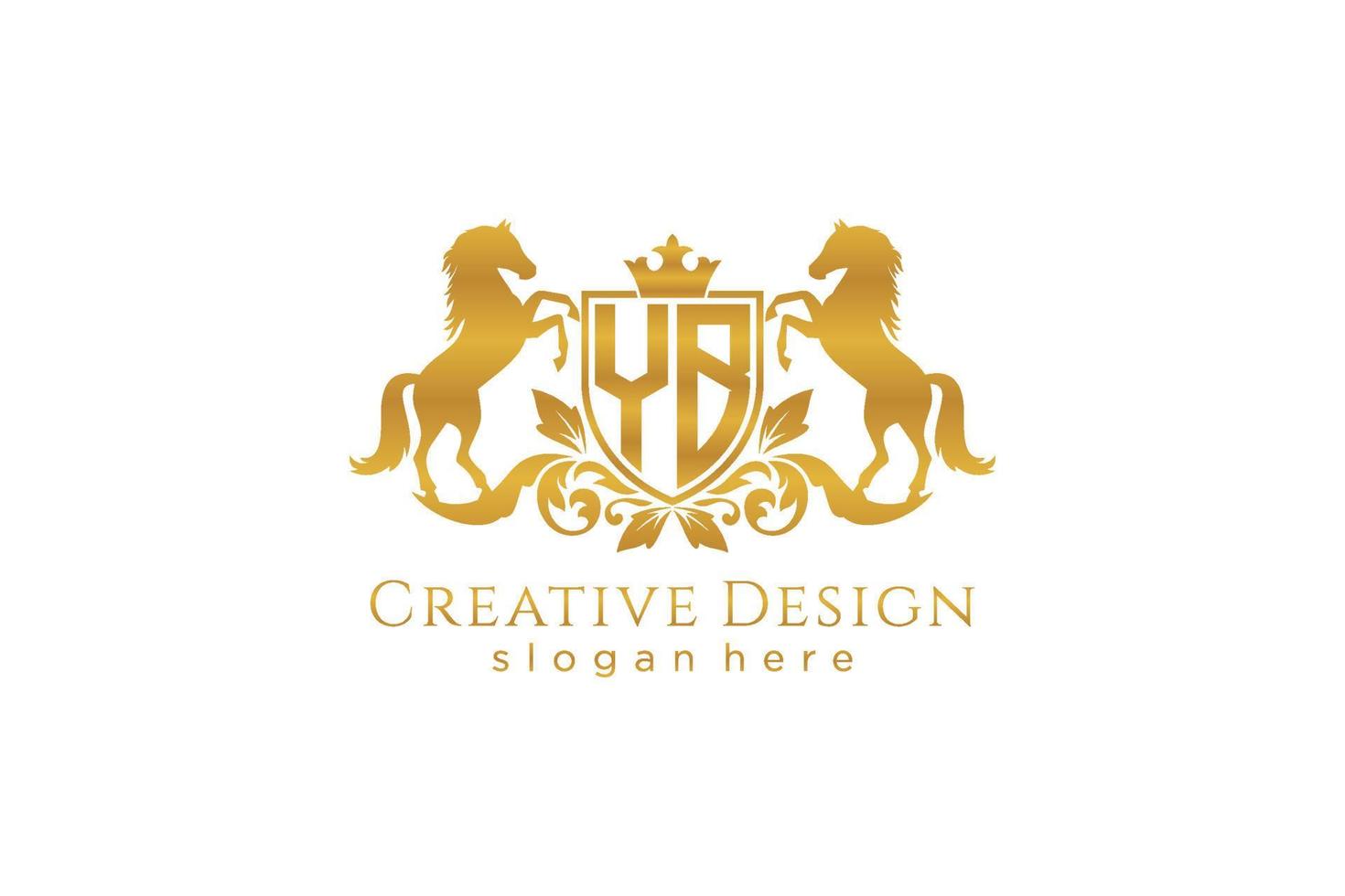 initial YB Retro golden crest with shield and two horses, badge template with scrolls and royal crown - perfect for luxurious branding projects Pro Vector and Pro SVG