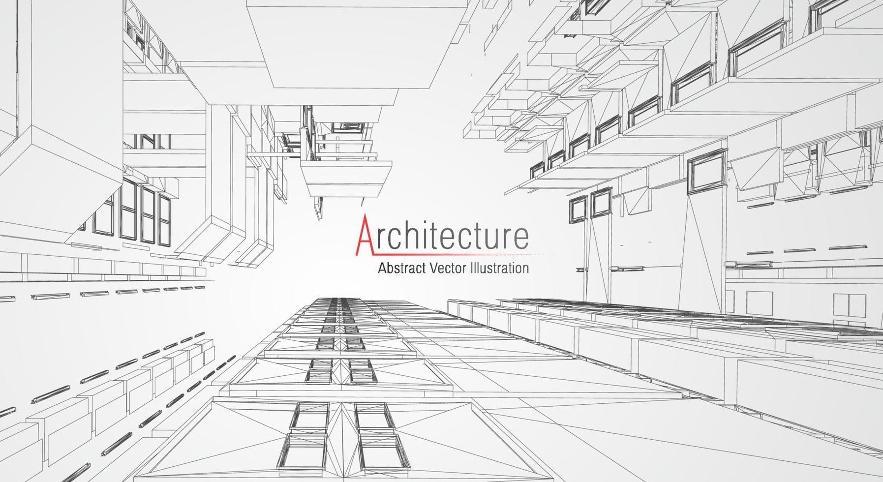 Architecture line background. Building construction sketch vector abstract. Modern city 3d project. Technology geometric grid. Wire blueprint house. Digital architect innovation wireframe. Pro Vector
