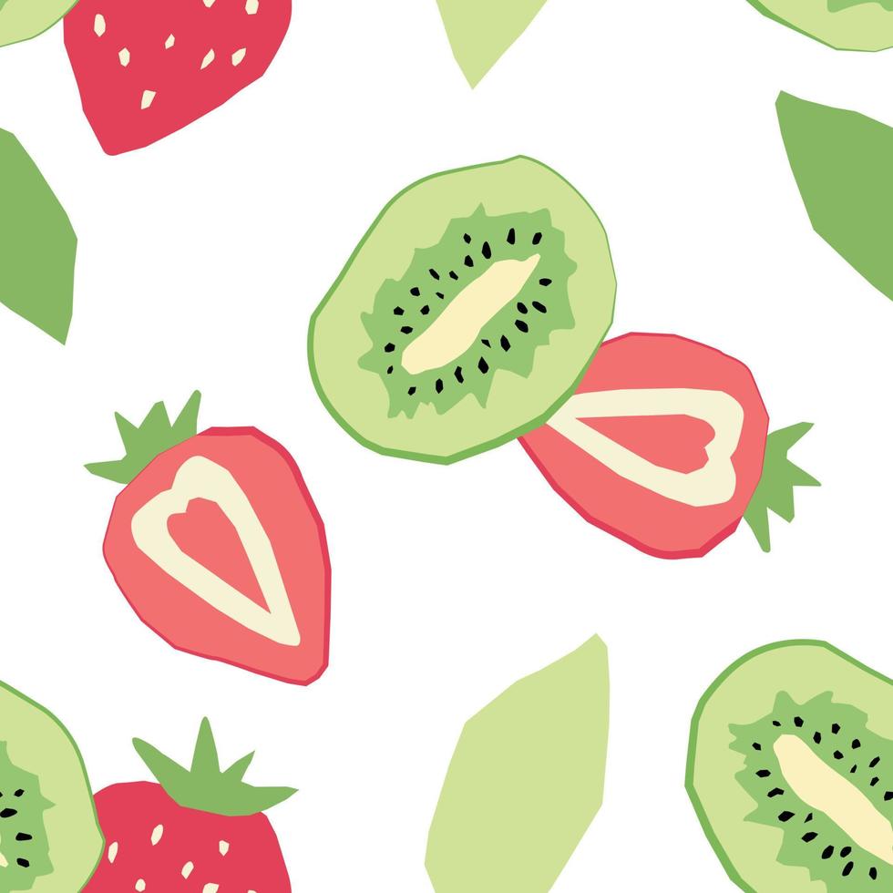 Abstract seamless pattern with strawberry and kiwi in flat style. Vector wallpaper on a white background. Perfect for textiles or surface design Pro Vector