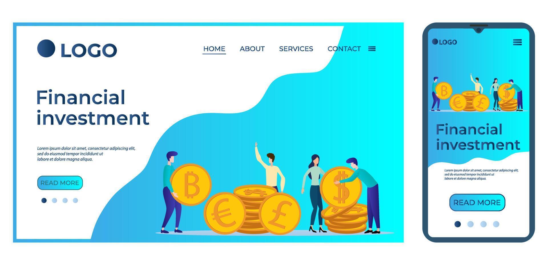 Financial investment.Template for the user interface of the website's home page.Landing page template.The adaptive design of the smartphone.vector illustration. Pro Vector and Pro SVG