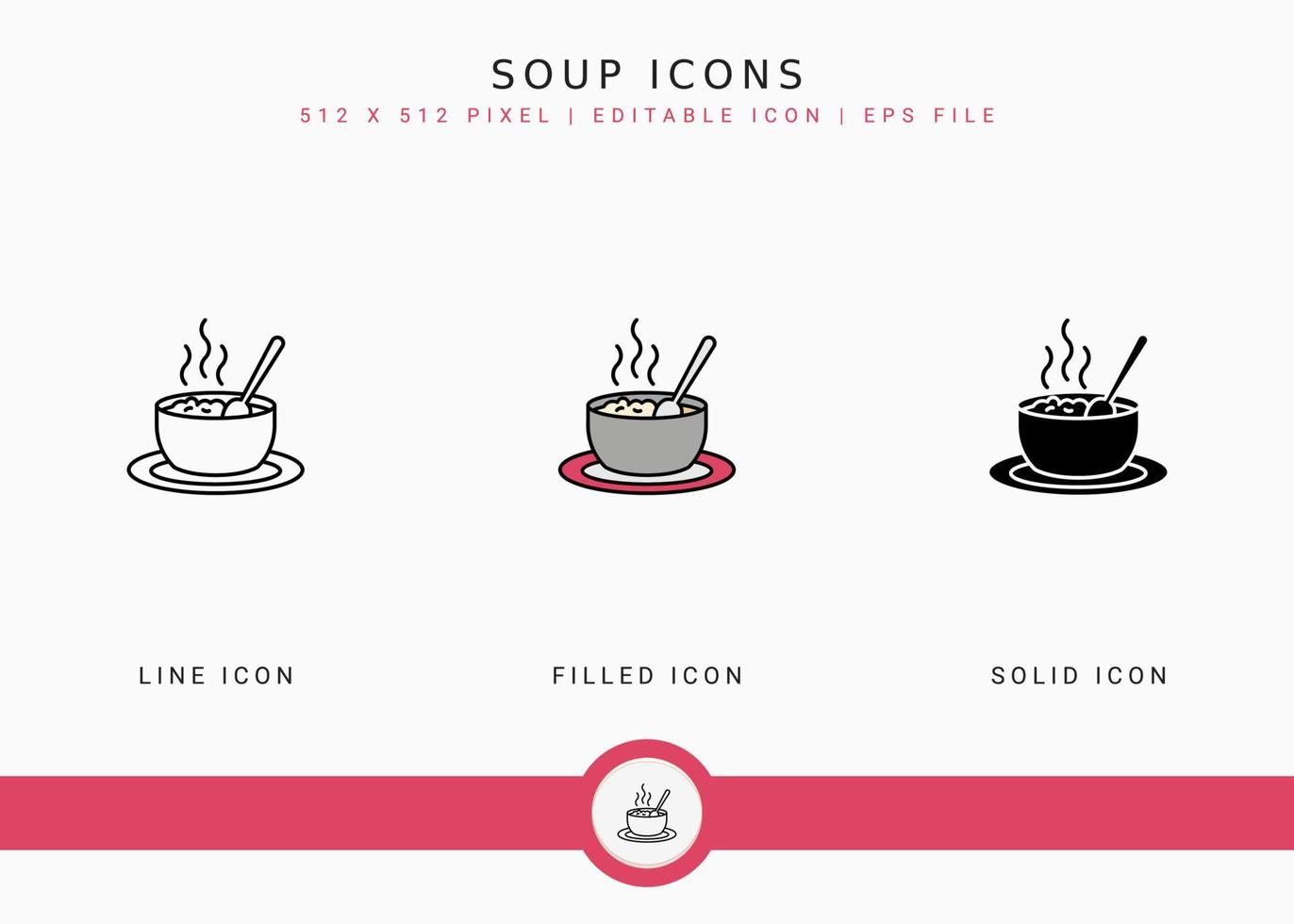 Soup icons set vector illustration with solid icon line style. Hot bowl concept. Editable stroke icon on isolated background for web design, user interface, and mobile application Pro Vector and Pro SVG