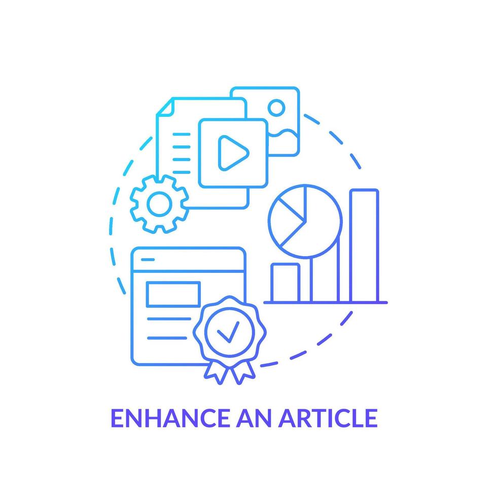 Enhance article blue gradient concept icon. Media embeddedness use method abstract idea thin line illustration. Quality and metrics. Isolated outline drawing. Pro Vector and Pro SVG