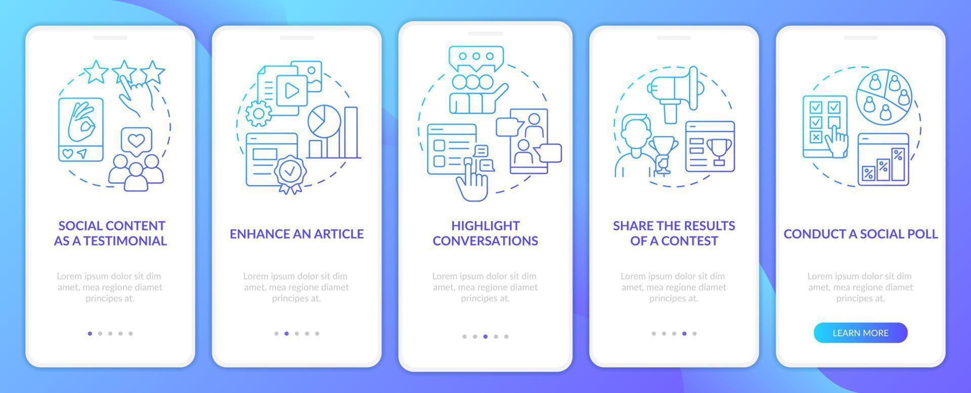 Embeddedness in social networks blue gradient onboarding mobile app screen. Walkthrough 5 steps graphic instructions with linear concepts. UI, UX, GUI template. Pro Vector