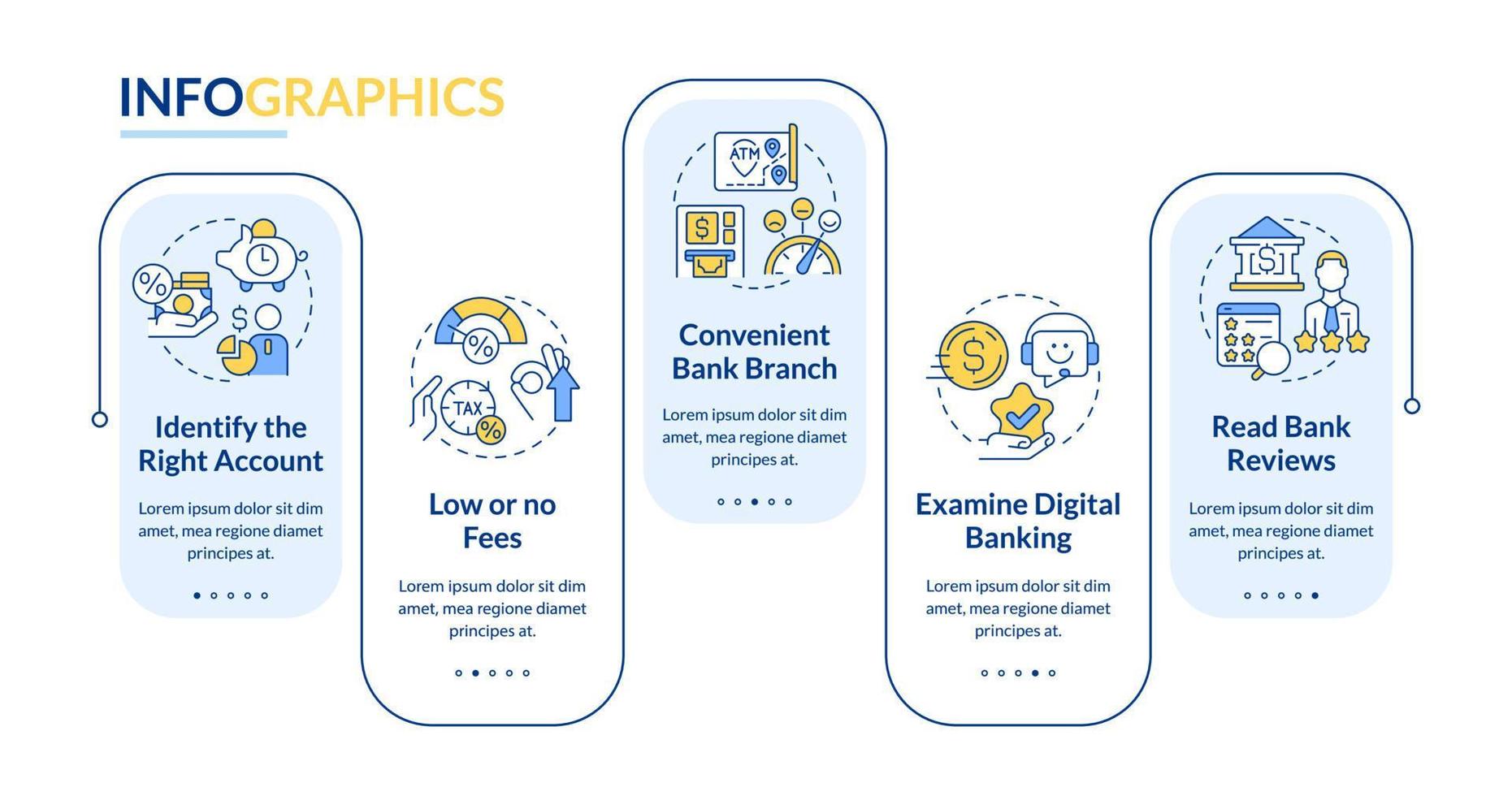 Choose bank rectangle infographic template. Customer benefits. Data visualization with 5 steps. Editable timeline info chart. Workflow layout with line icons. Pro Vector