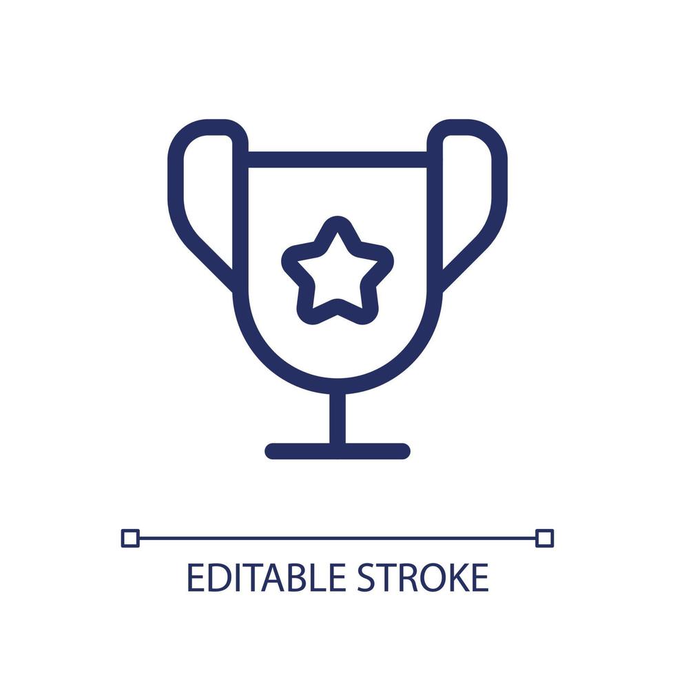 Trophy cup pixel perfect linear ui icon. Outstanding student award. Academic competition. GUI, UX design. Outline isolated user interface element for app and web. Editable stroke. Pro Vector