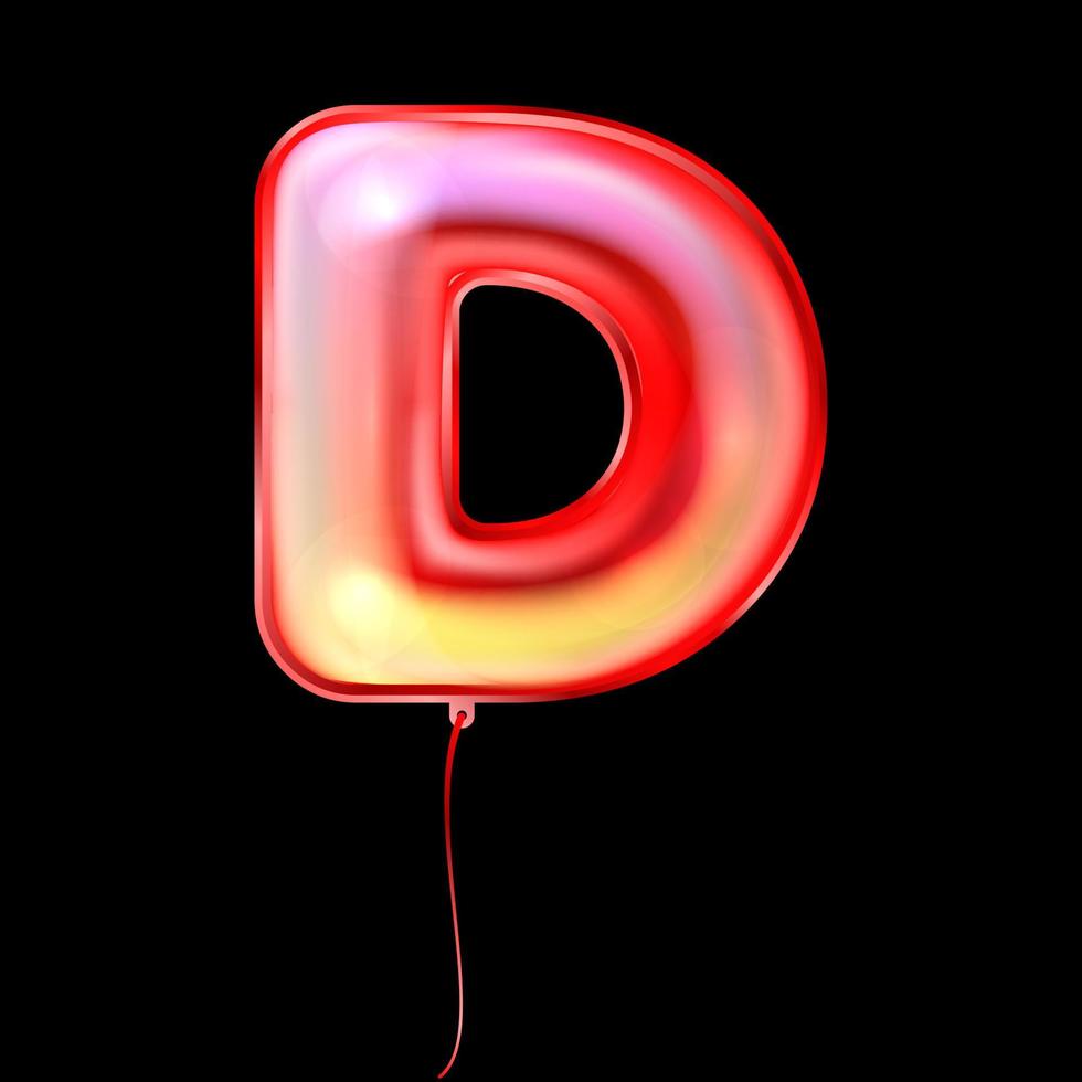 Red metallic balloon, inflated alphabet symbol D Pro Vector