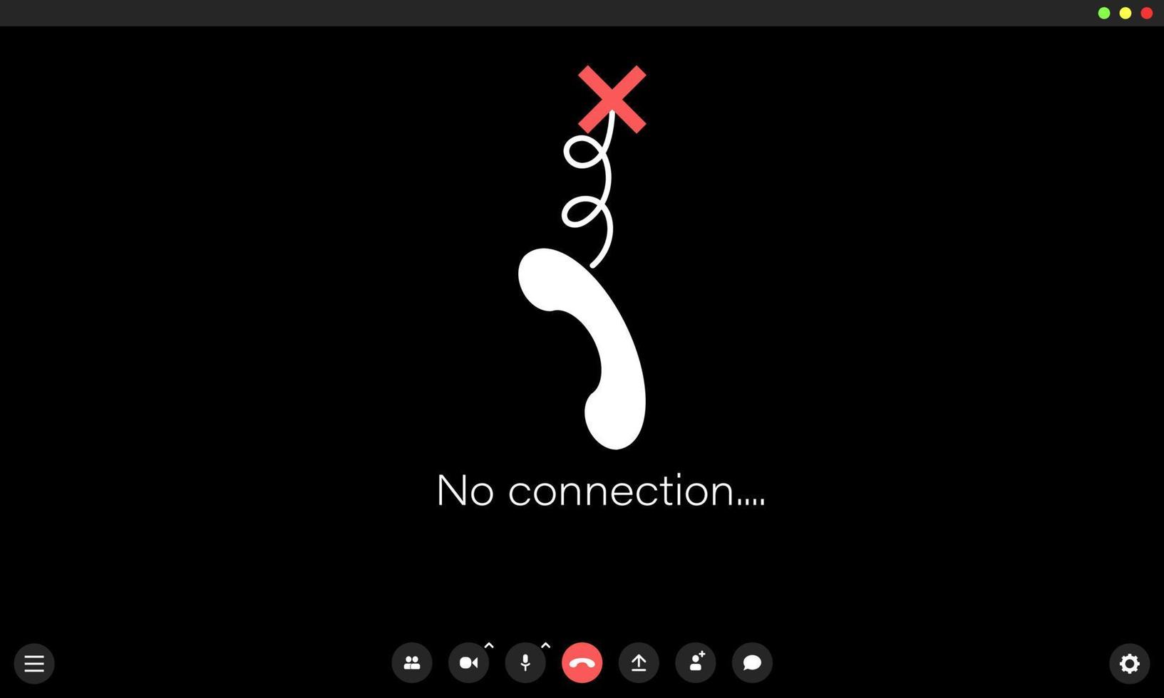 No connection in video meet. Conception of bad signal. Mockup of online call Pro Vector