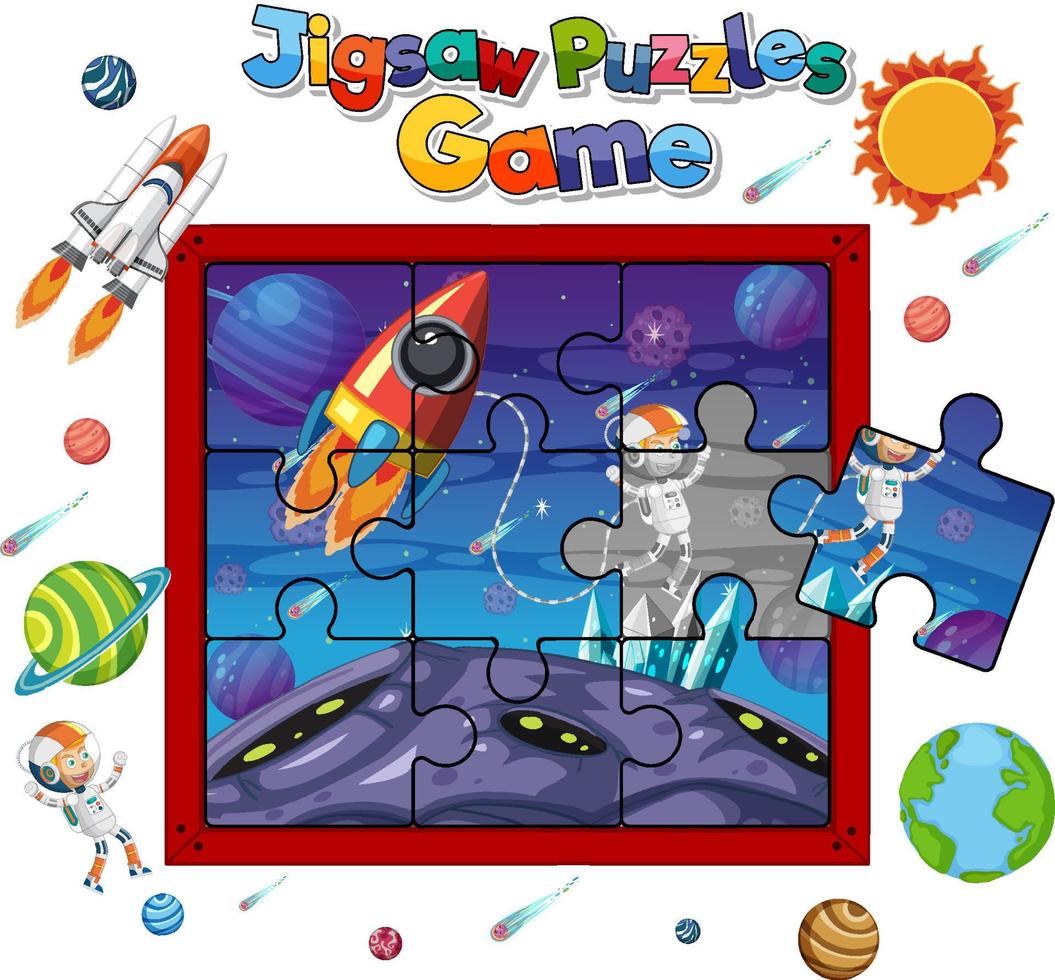Astronaut in space photo puzzle game template vector