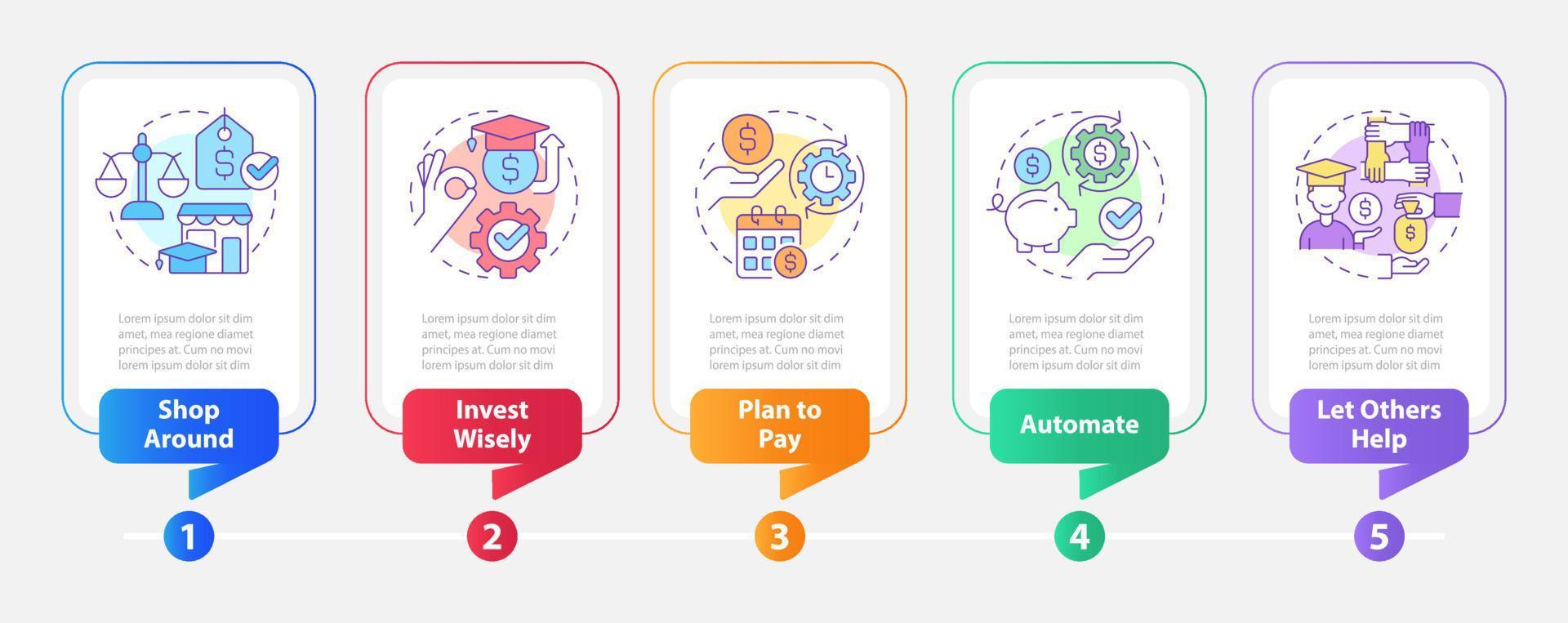 Saving for college tips rectangle infographic template. Money. Data visualization with 5 steps. Editable timeline info chart. Workflow layout with line icons. Pro Vector and Pro SVG