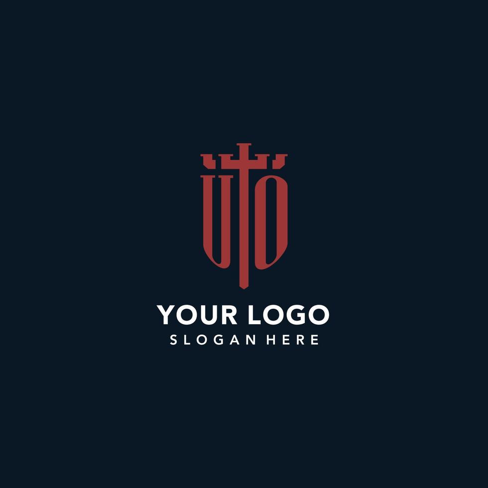 UO initial monogram logos with sword and shield shape design Pro Vector and Pro SVG
