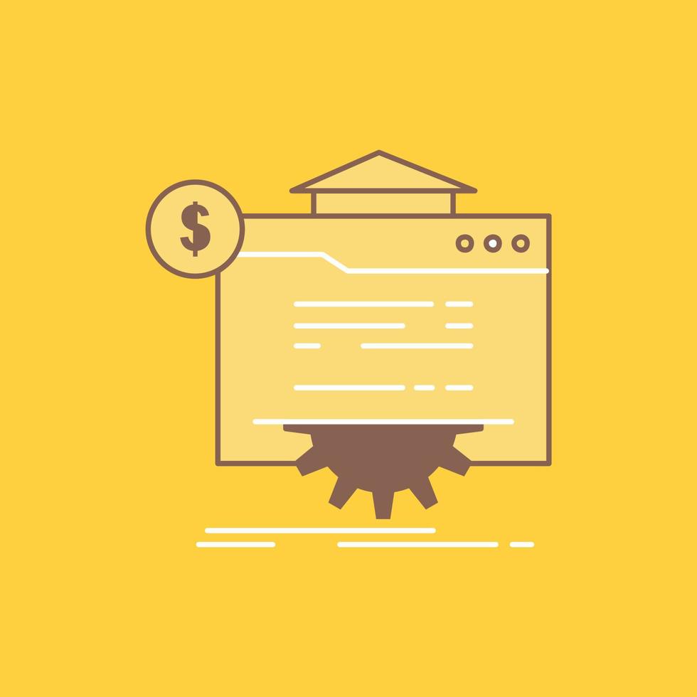 seo, progress, globe, technology, website Flat Line Filled Icon. Beautiful Logo button over yellow background for UI and UX, website or mobile application vector