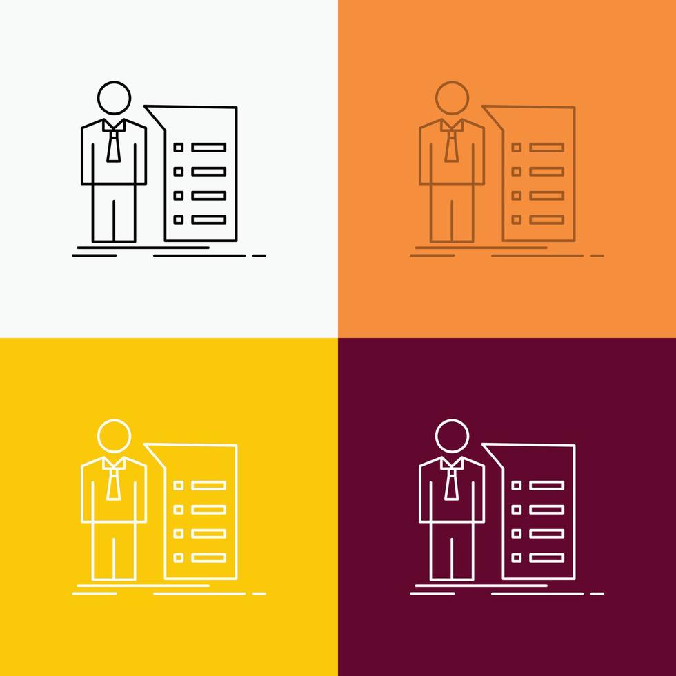 Business. explanation. graph. meeting. presentation Icon Over Various Background. Line style design. designed for web and app. Eps 10 vector illustration